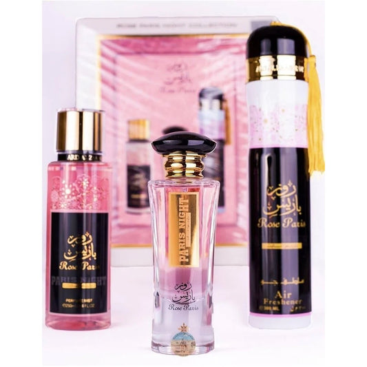 Rose Paris Night Gift Set by Ard Al Zaafaran – 3 Pc Collection (EDP, Mist & Air Freshener)