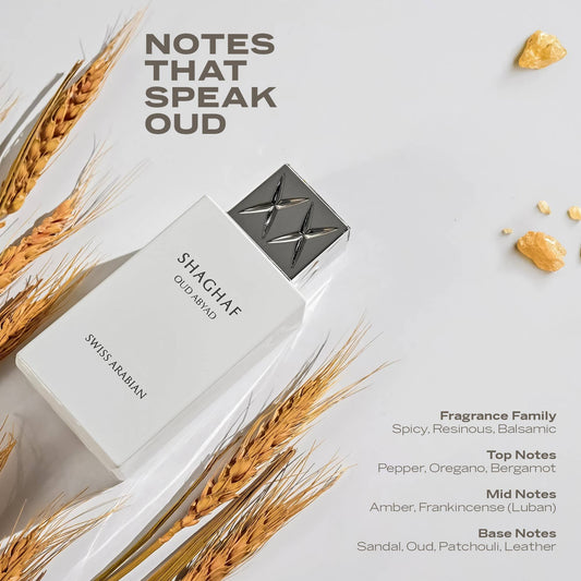 Shaghaf Oud Abyad by Swiss Arabian – Spicy Incense, Oud & Leather Unisex Perfume 100ml