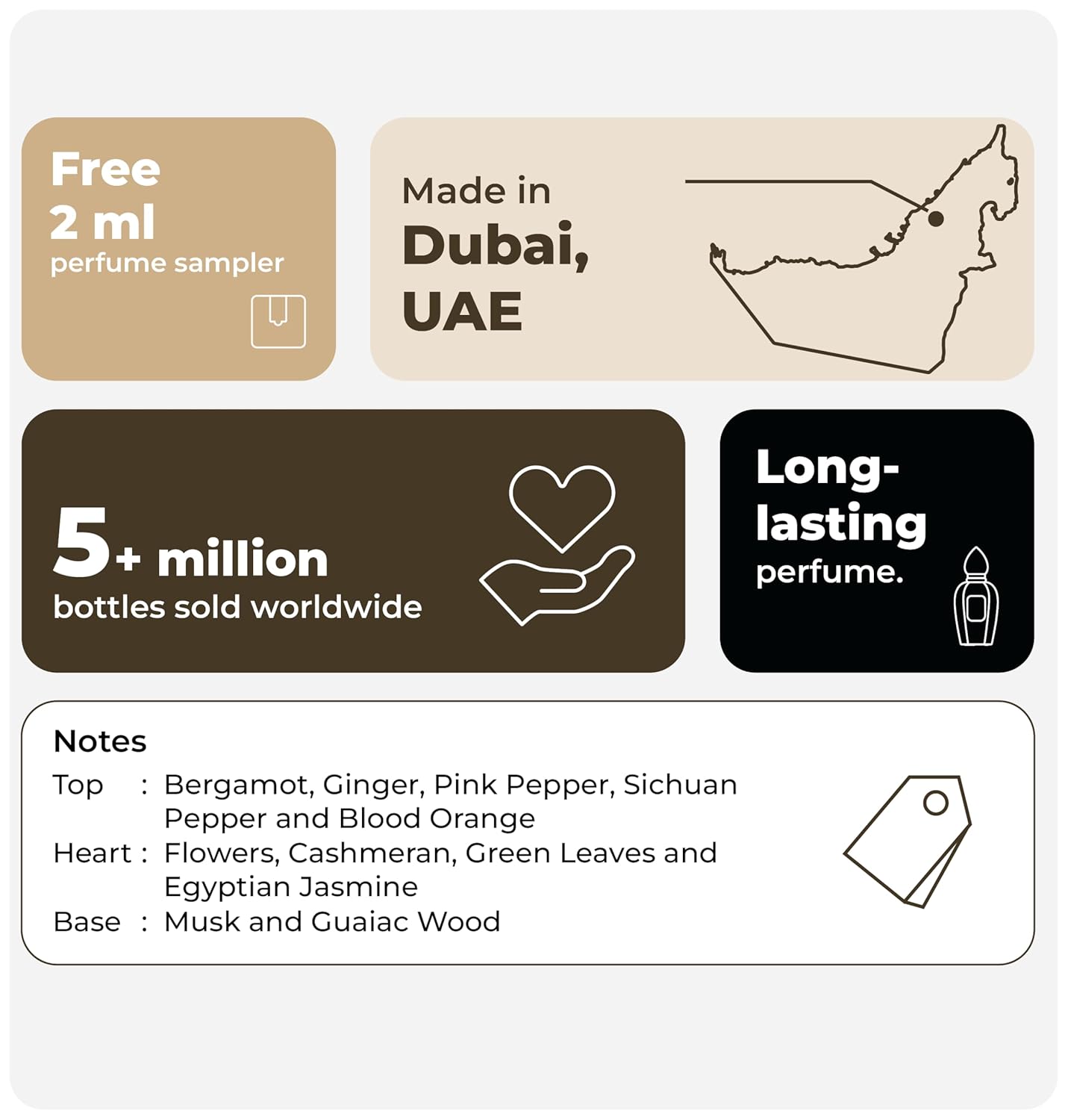 - Top Notes: A refreshing burst of bergamot, ginger, pink pepper, Sichuan pepper, and blood orange opens the fragrance, stimulating the senses and creating a sense of clarity.